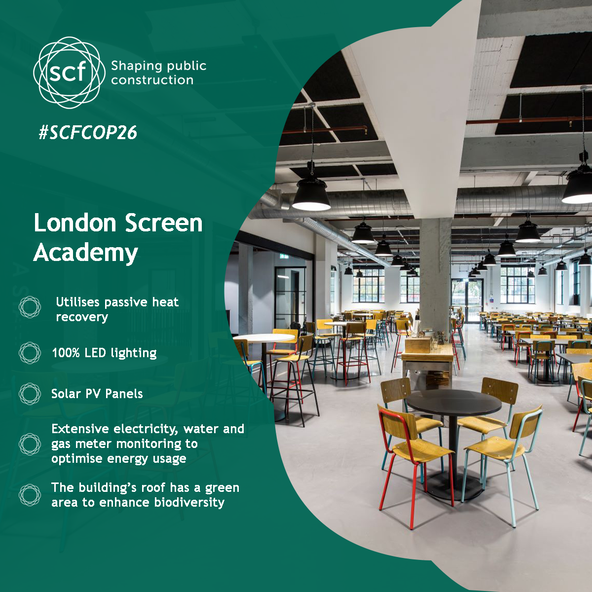 During the conference, at SCF, we have been looking back at some of the achievements of our contractor colleagues in this area, celebrating some fantastic examples of how construction in the public sector is setting the bar for sustainability.